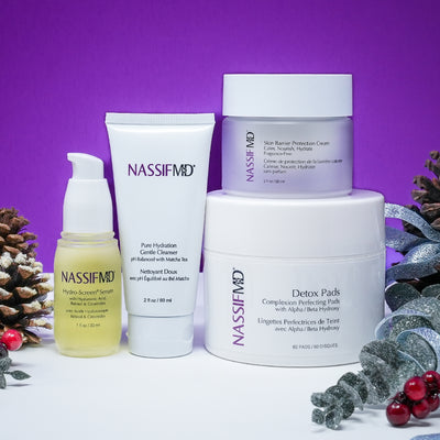 - NassifMD® Detox Facial Pads – One of our best-selling products, this unique combination of deep cleansing and exfoliation can be used after cleansing or on its own to brighten and prep the skin for the next steps in your skincare routine.