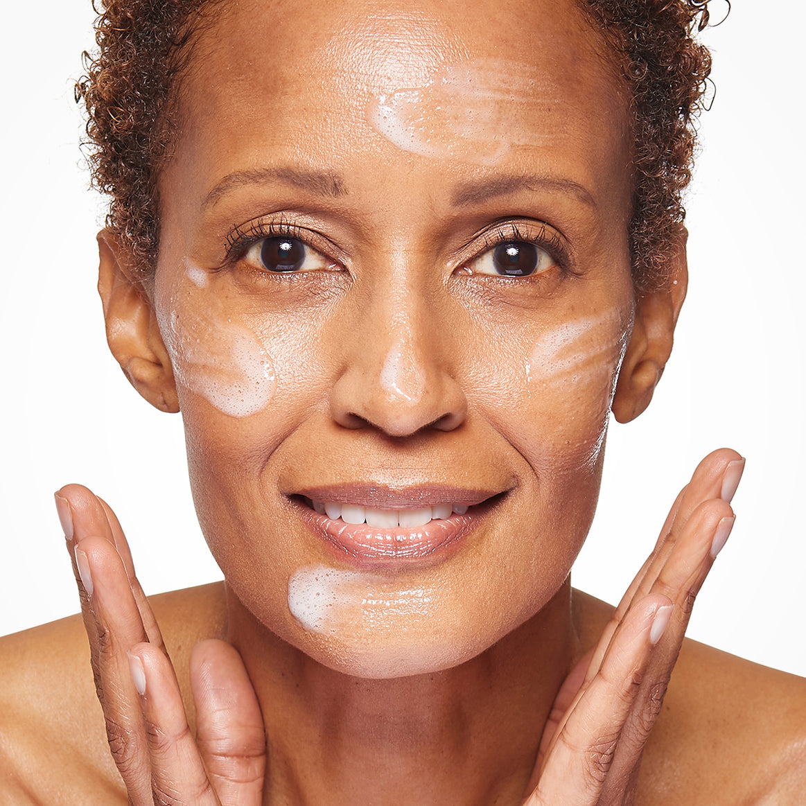 Wet your face with water, apply a small amount of cleanser to your fingertips or a facial brush, and gently massage onto your face in a circular motion, creating a lather. Rinse thoroughly with warm water or a damp washcloth and pat dry. Follow with your usual skincare routine