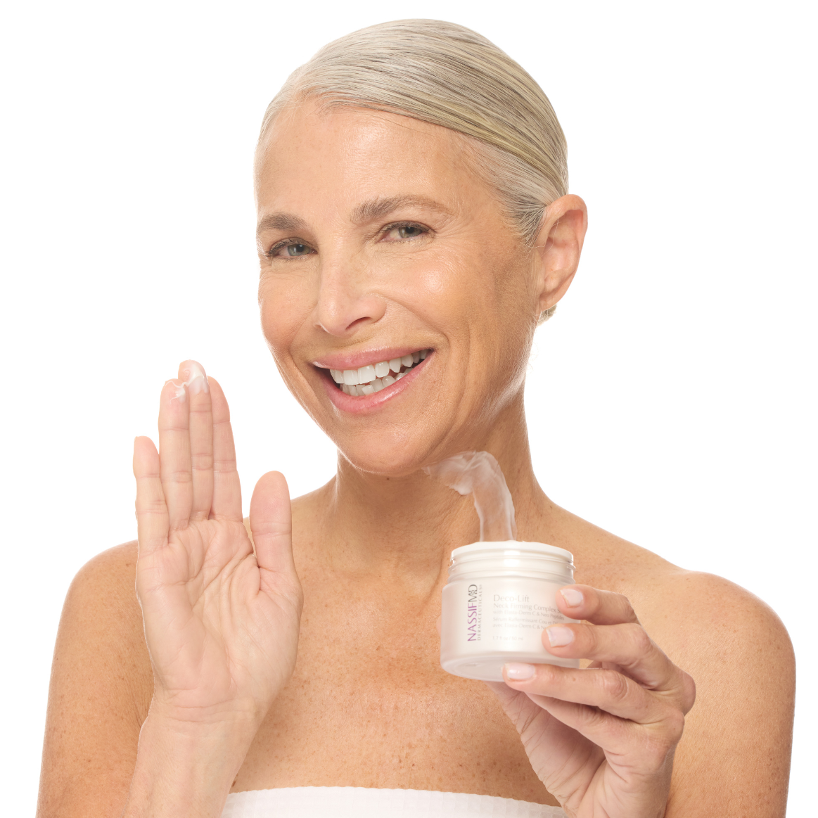 Non-surgical methods to tighten neck skin include using specialized skincare treatments like firming serums and creams such as Deco-Lift Neck & Decollete Firming & Lifting Complex and Age Defying Neck & Décolleté Serumdesigned for the neck area. Exercises that target the neck muscles can also help improve the appearance of loose skin.