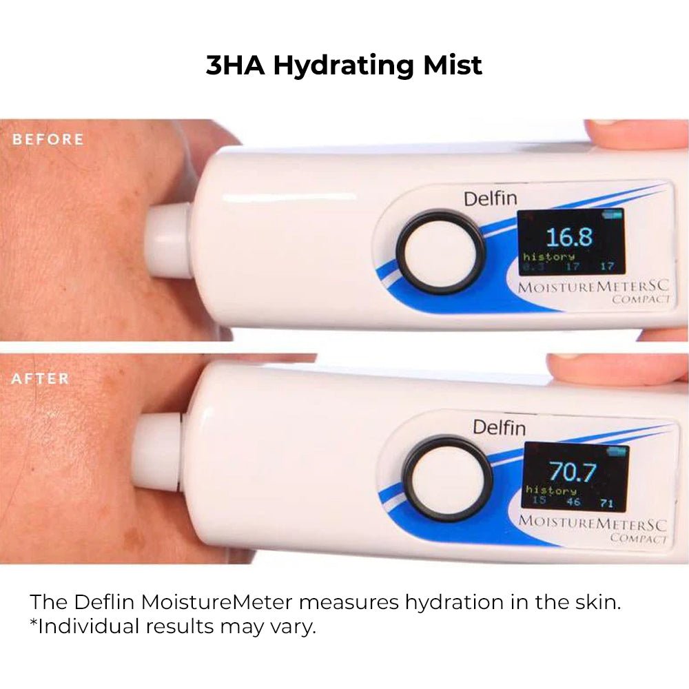 - 3HA - Contains forms of hyaluronic acid in three different molecular weights. The lowest weight HA is easily absorbed onto lower layers of the epidermis to help optimize hydration, while the highest weight HA is known to hold 1,000 times its weight in water. It draws moisture from the air and delivers it to the skin for continuous moisturization.