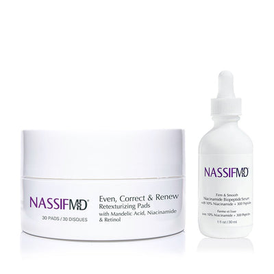 Prep Your Skin – Start with clean skin. Use NassifMD® Pure Hydration Facial Cleanser or Purifying Glycolic Facial Cleanser, followed by Detox Facial Pads to exfoliate and refresh. Apply Hydro-Screen Serum for smooth gliding and enhanced absorption.
